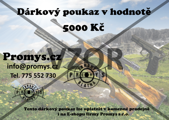 Použití dárkového poukazu: Tento dárkový pokaz s platností do konce roku 2017, je možné použít k nákupu zboží a služeb v naší kamenné prodejně - Puškařství Promys s.r.o. na adrese Tyršova 369 Blatná 388 01 nebo v našem E-shopu - www.promys.cz. V objednávce zboží je nutné uvést číslo dárkového poukazu a následně dárkoý poukaz zaslat poštou na naši adresu - Tyršova 369 Blatná 388 01. Objednané zboží bude odesláno po obdržení dárkového poukazu.