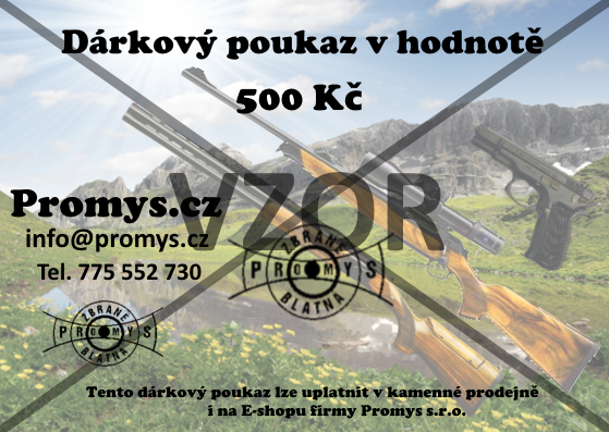 Použití dárkového poukazu: Tento dárkový pokaz s platností do konce roku 2017, je možné použít k nákupu zboží a služeb v naší kamenné prodejně - Puškařství Promys s.r.o. na adrese Tyršova 369 Blatná 388 01 nebo v našem E-shopu - www.promys.cz. V objednávce zboží je nutné uvést číslo dárkového poukazu a následně dárkoý poukaz zaslat poštou na naši adresu - Tyršova 369 Blatná 388 01. Objednané zboží bude odesláno po obdržení dárkového poukazu.