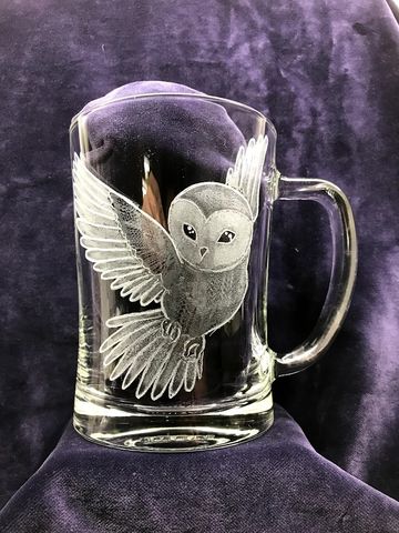 Ručně gravírovaný půllitr Sova